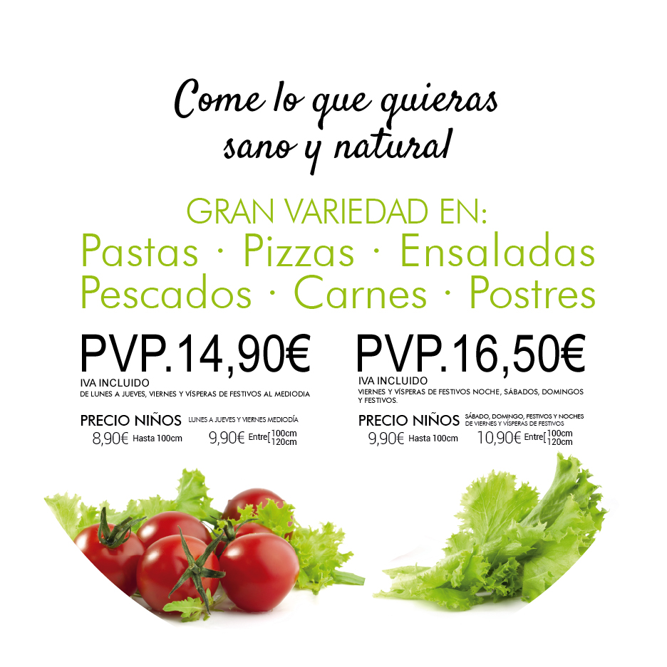 En nuestro buffer encontraras gran variedad de elaboraciones, como ensadas, pastas, pizzas, carnes, pescado y un sinfín de platos para desgustar.